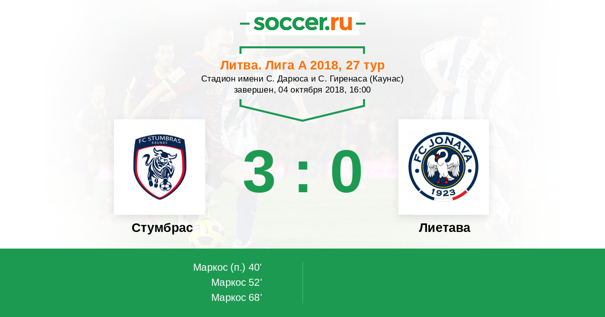 | Стумбрас | 9:1 | 4:0 | 5:1 |