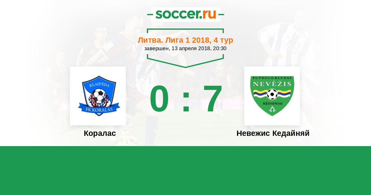 | Коралас | 0:9 | 0:0 | 0:9 |