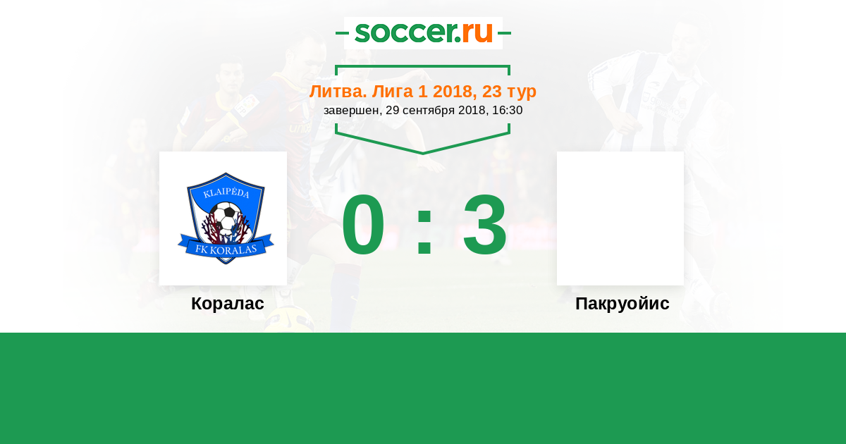 | Коралас | 0:3 | 0:0 | 0:3 |