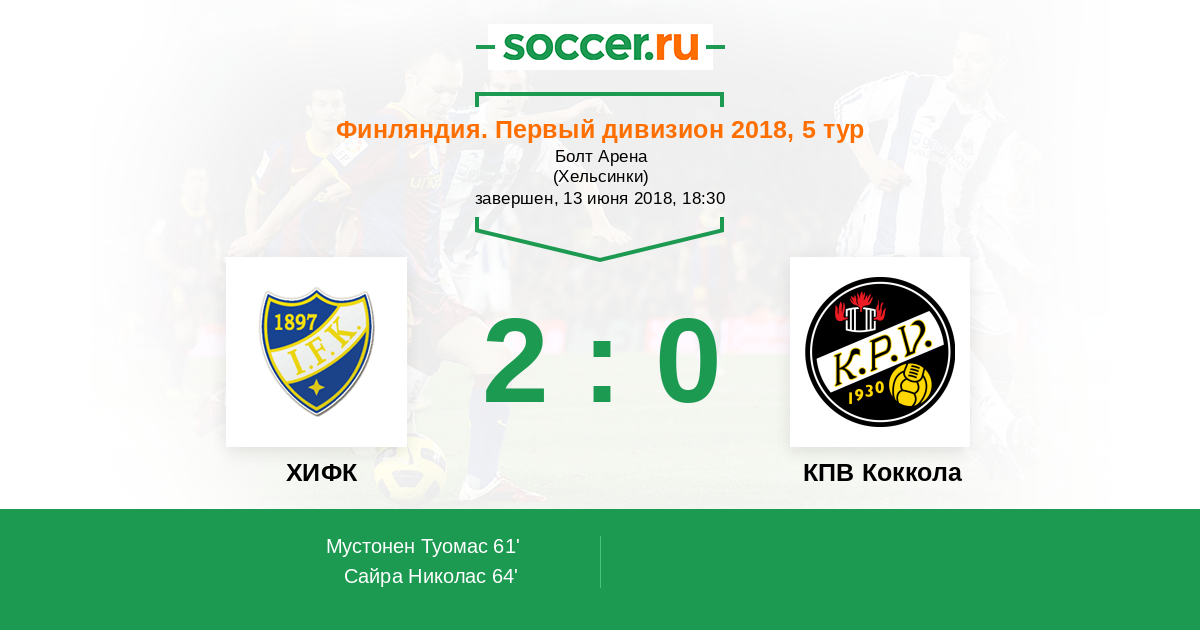 | ХИФК | КПВ Коккола | |