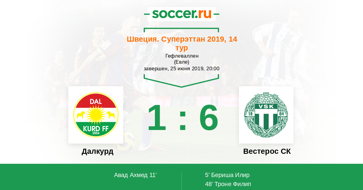 | Далкурд | 32:23 | 19:5 | 13:18 |