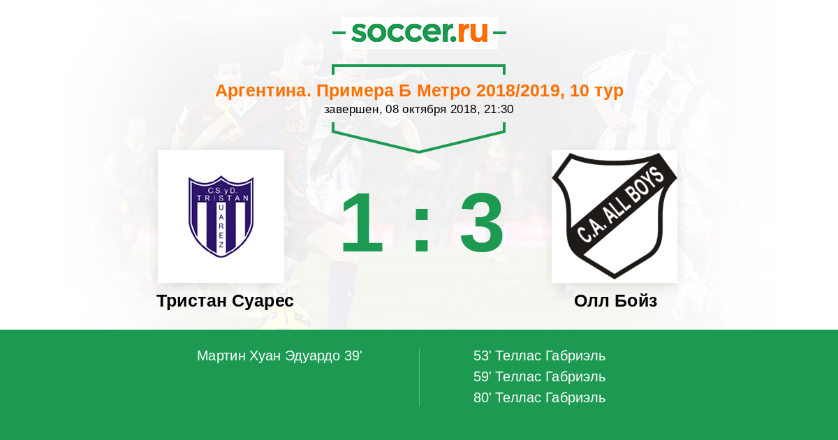 | Аргентина. Примера Б Метро | 6 | 3 | 1 | 2 |