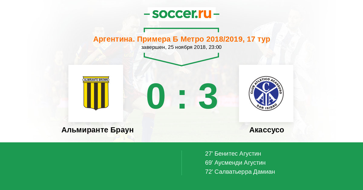 | Альмиранте Браун | Акассусо | |