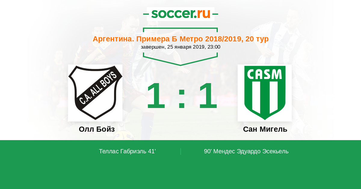 | Аргентина. Примера Б Метро | 1 | 0 | 0 | 1 |