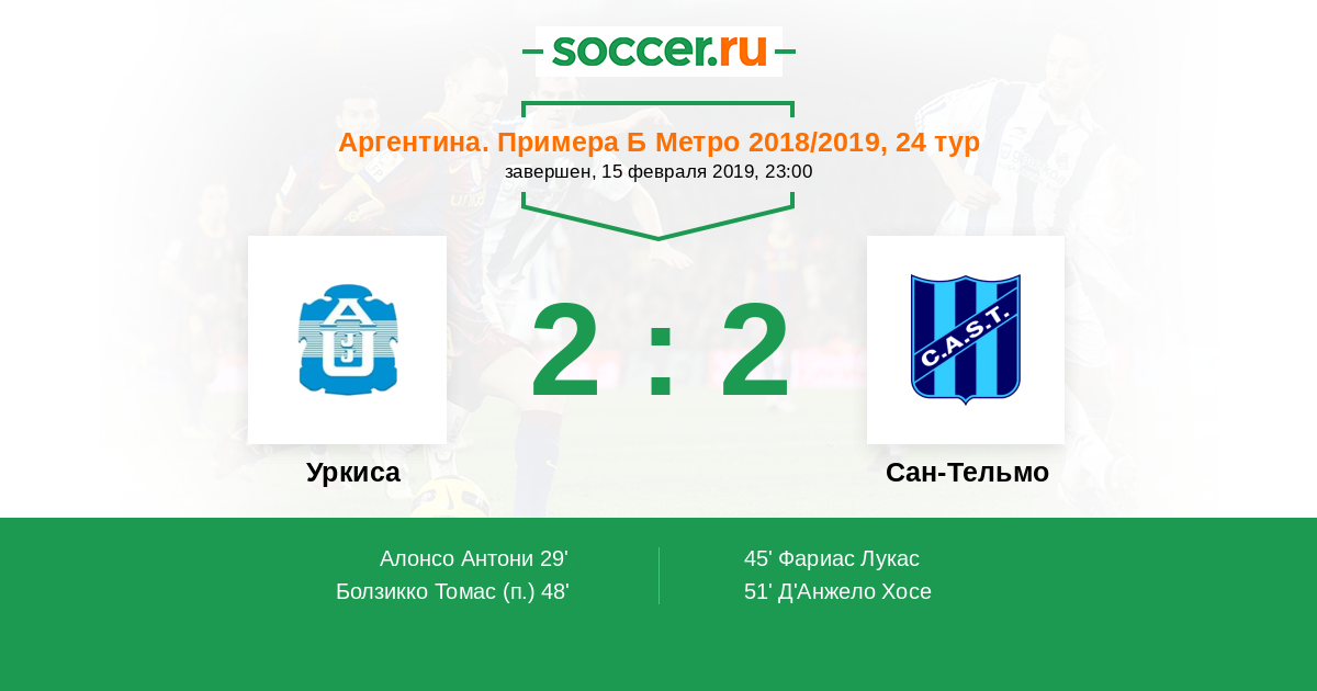 | Сан-Тельмо | 11:4 | 6:0 | 5:4 |