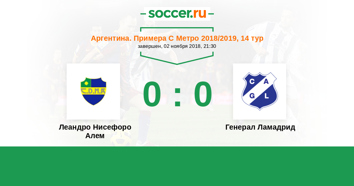 | Аргентина. Примера С Метро | 18 | 6 | 7 | 5 |