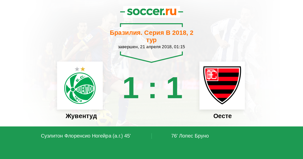 | Бразилия. Серия В | 4 | 1 | 1 | 2 |