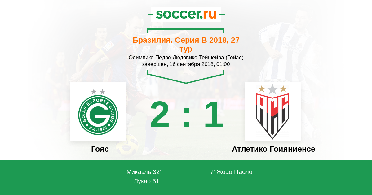 | Атлетико Гоияниенсе | 69:69 | 41:37 | 28:32 |