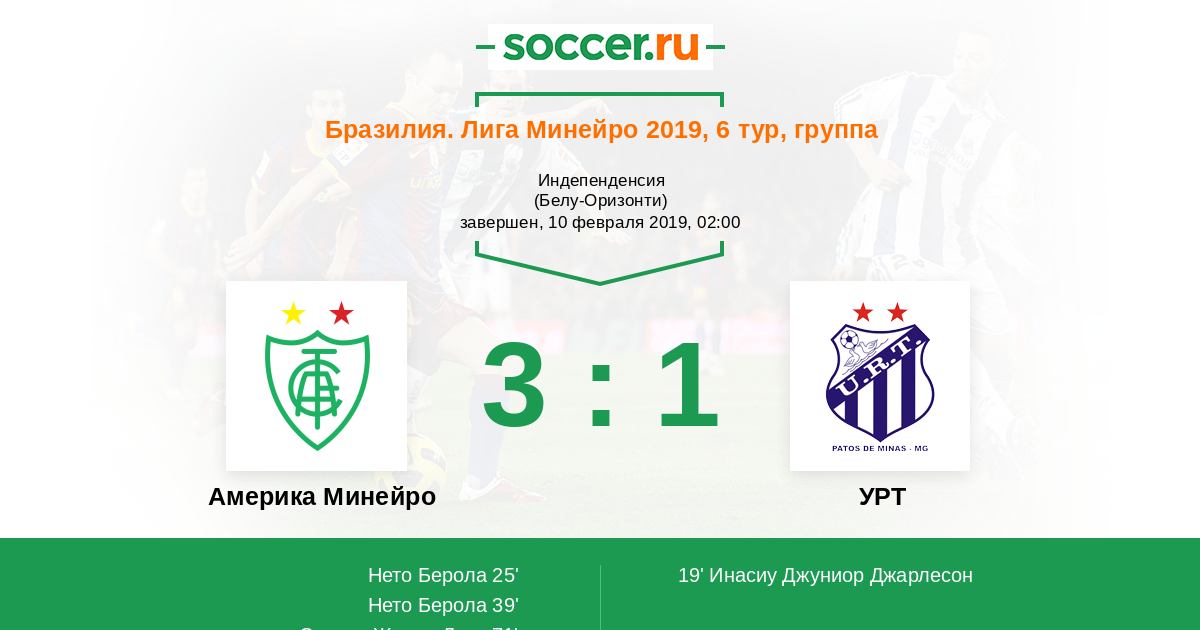 | Америка Минейро | УРТ | |