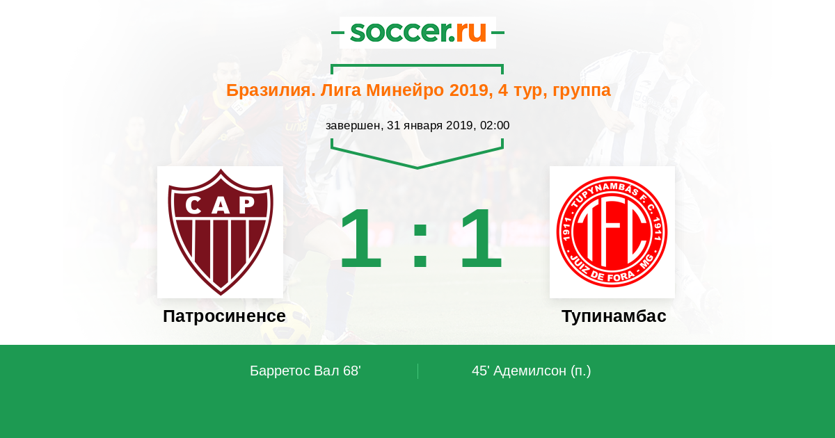 | Патросиненсе | 4:0 | 0:0 | 4:0 |