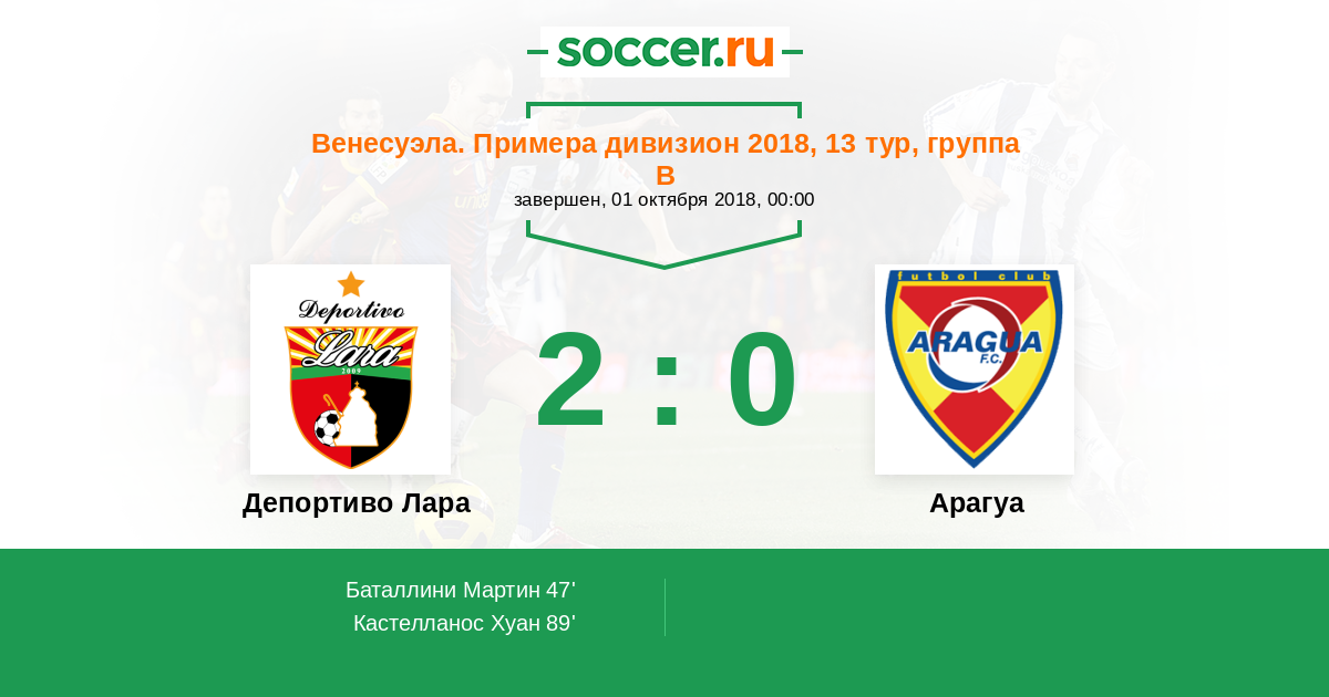 | Депортиво Лара | 33:36 | 20:15 | 13:21 |