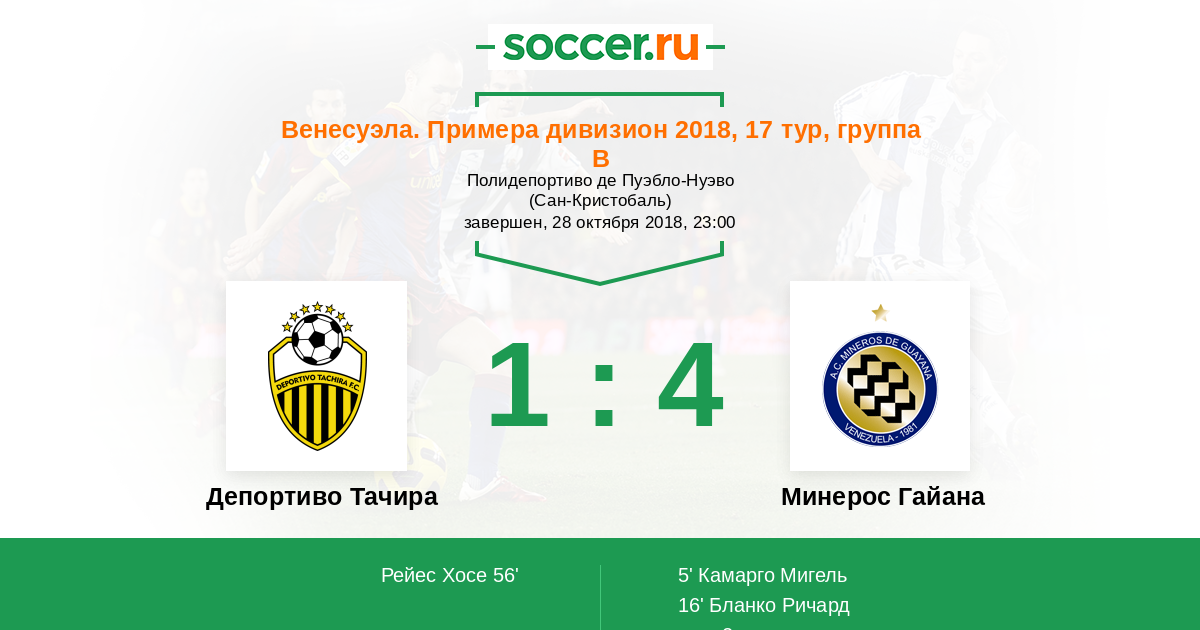| Депортиво Тачира | 65:52 | 37:19 | 28:33 |