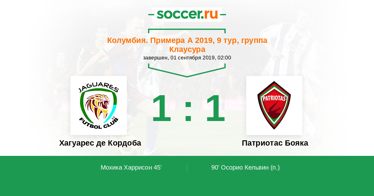 | Хагуарес де Кордоба | Патриотас Бояка | |