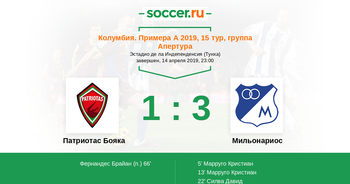 | Патриотас Бояка | Мильонариос | |