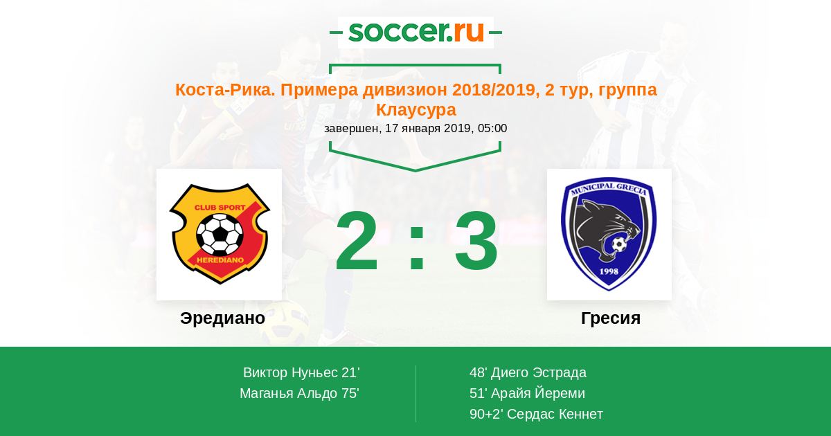 | Коста-Рика. Примера дивизион | 26 | 15 | 2 | 9 |