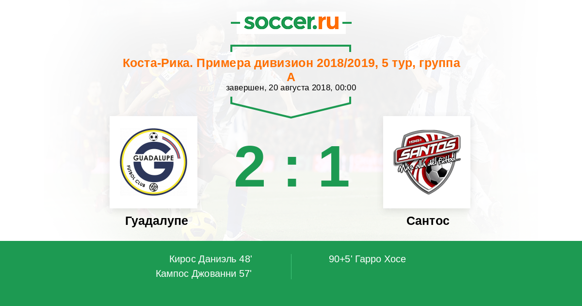 | Гуадалупе | 41:46 | 19:26 | 22:20 |