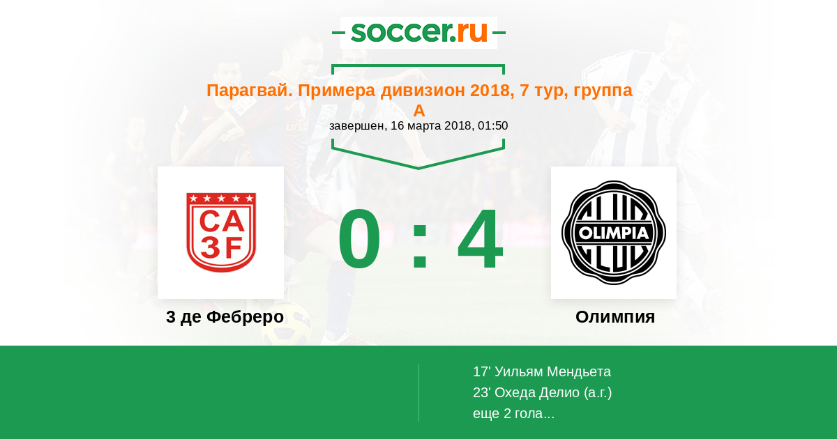 | 3 де Фебреро | 3:4 | 1:0 | 2:4 |