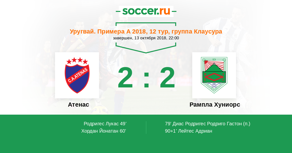 | Рампла Хуниорс | 38:27 | 17:12 | 21:15 |
