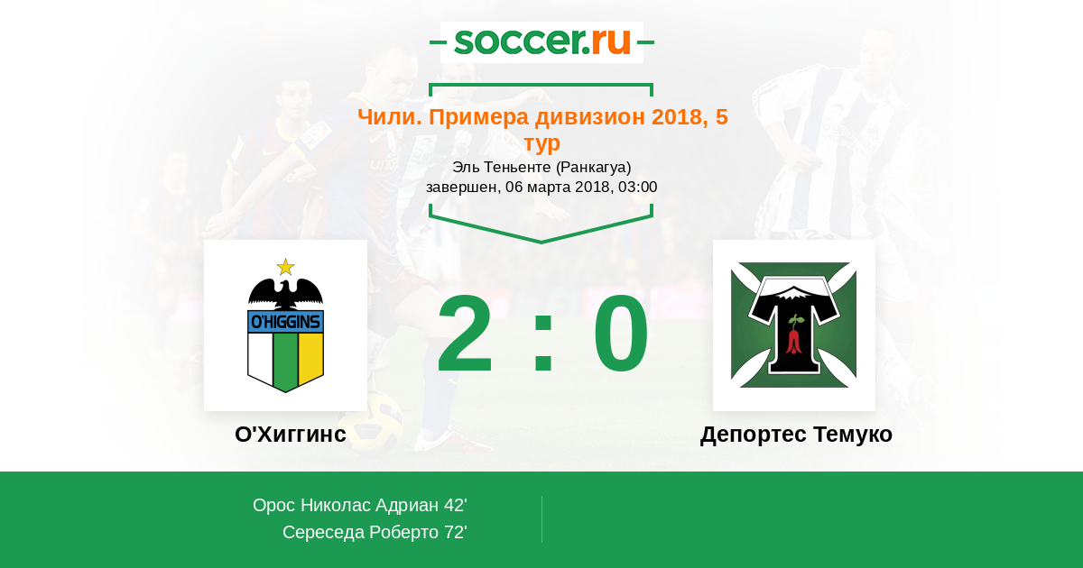 | О'Хиггинс | 1:0 | 0:0 | 1:0 |