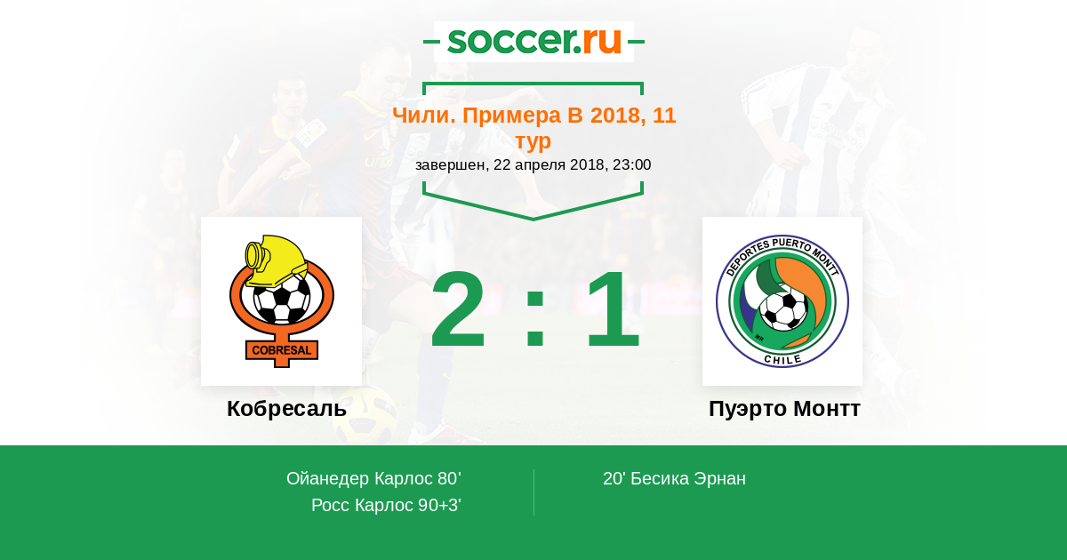 | Пуэрто Монтт | 2:0 | 2:0 | 0:0 |