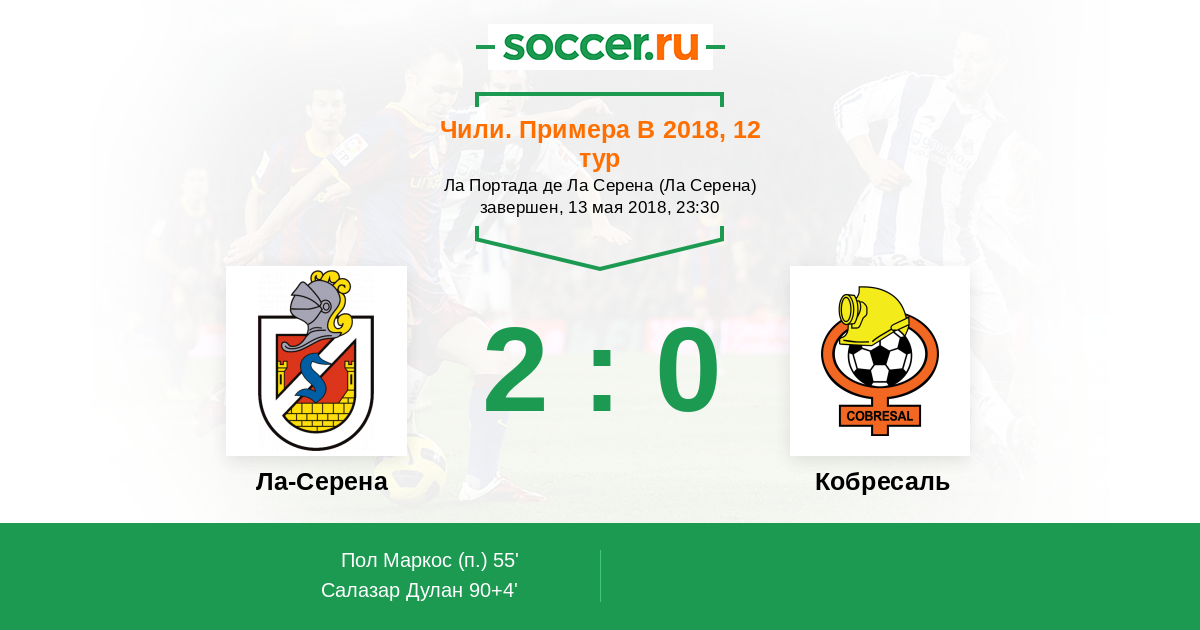 | Кобресаль | 47:40 | 26:17 | 21:23 |