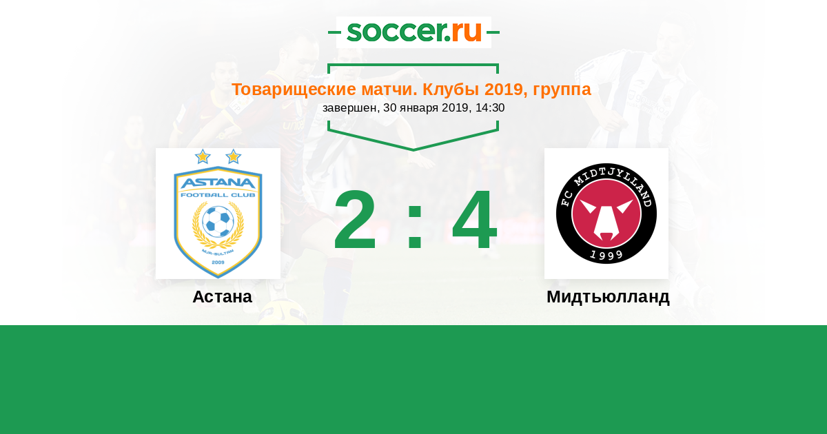 | Мидтьюлланд | 1:2 | 0:0 | 1:2 |