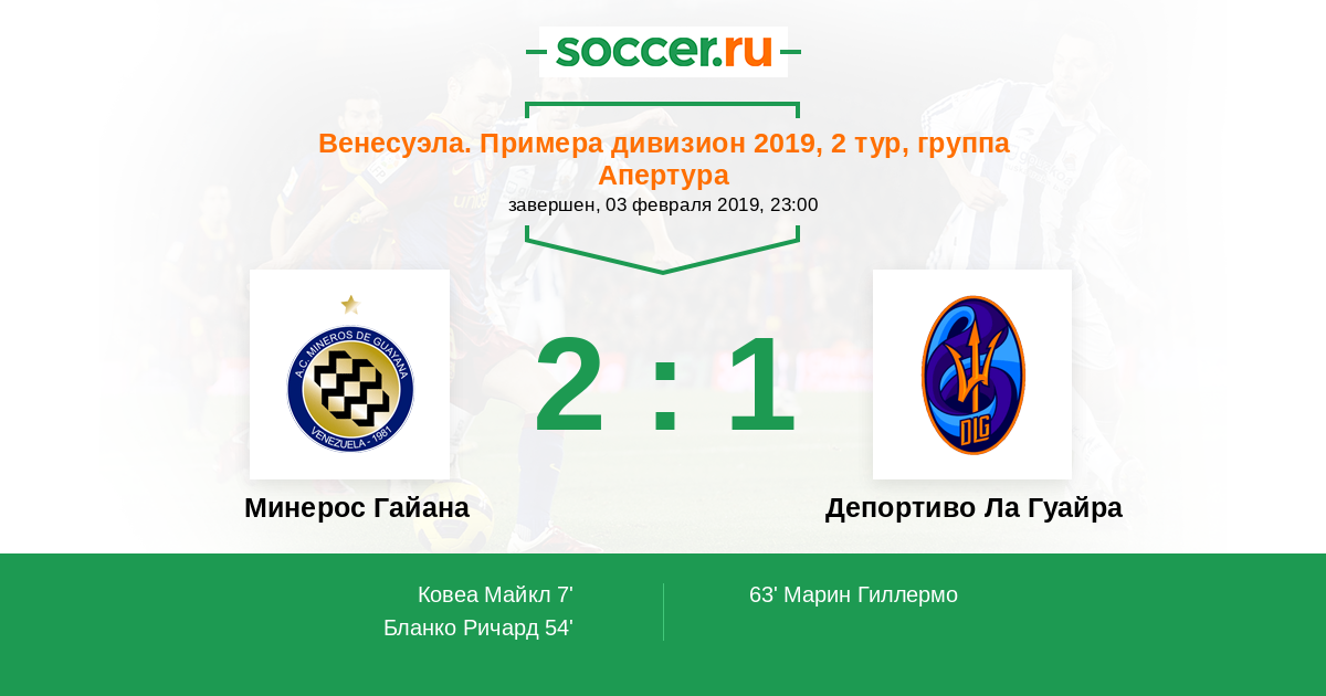 | Минерос Гайана | Депортиво Ла Гуайра | |