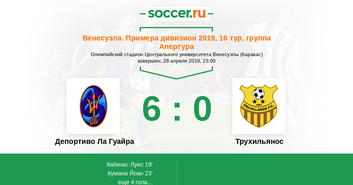 | Депортиво Ла Гуайра | 36:25 | 17:12 | 19:13 |