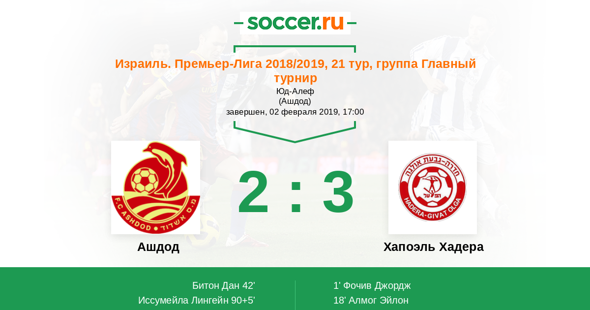 | Ашдод | Хапоэль Хадера | |