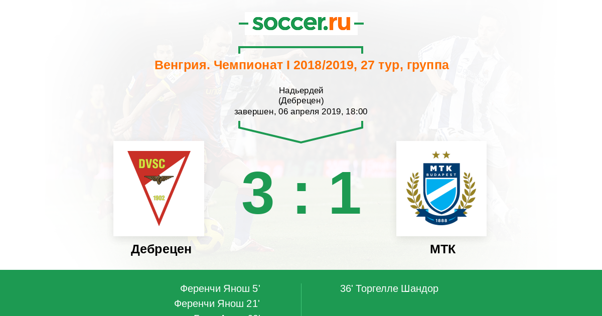 Дебрецен 2:1 МТК