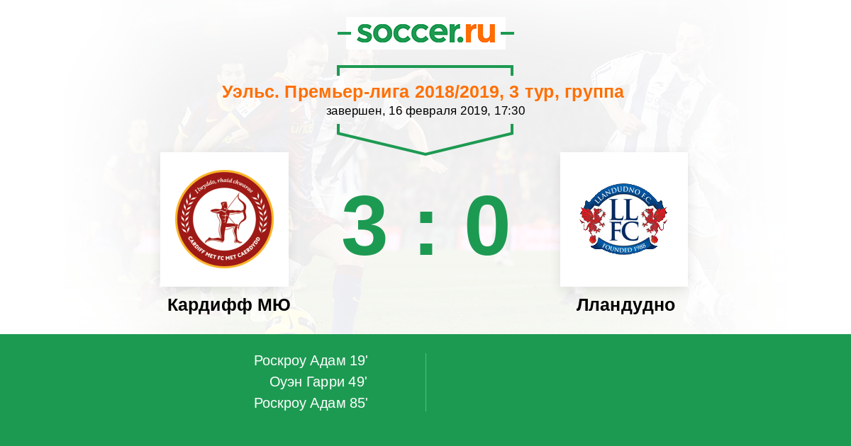 | Кардифф МЮ | 8:3 | 2:2 | 6:1 |