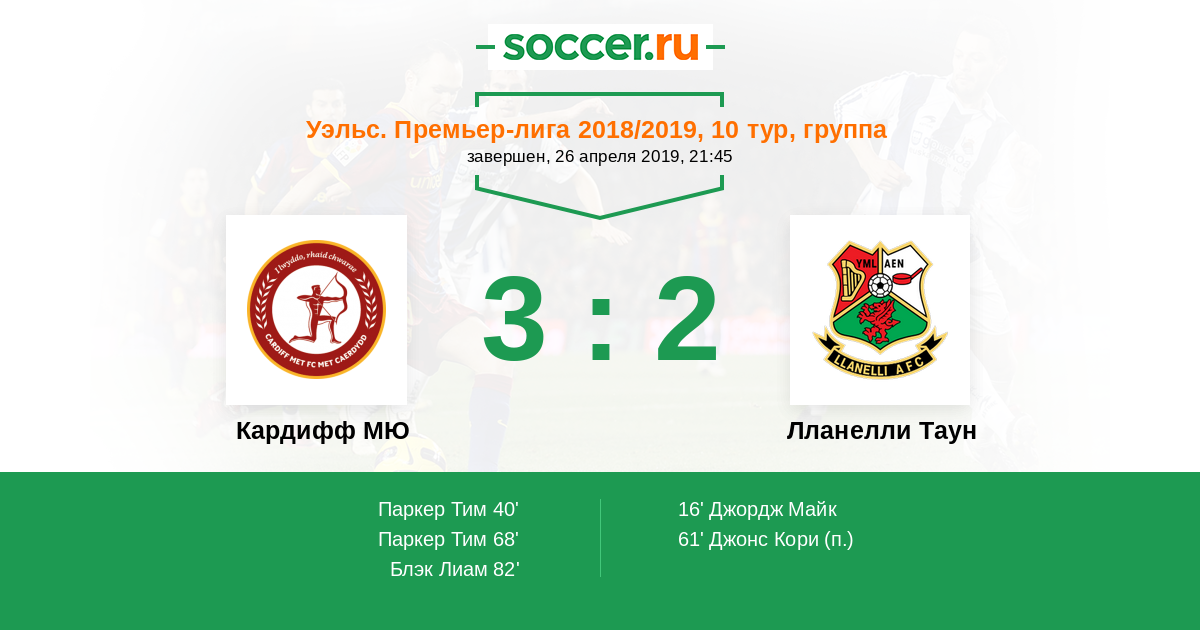 | Кардифф МЮ | 19:15 | 9:10 | 10:5 |