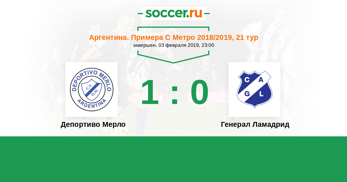 | Генерал Ламадрид | 1:2 | 0:0 | 1:2 |