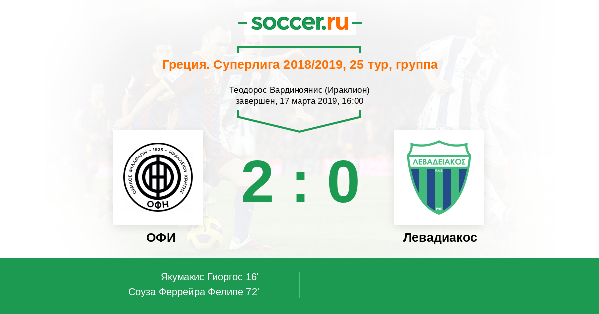 | Левадиакос | 18:7 | 14:3 | 4:4 |