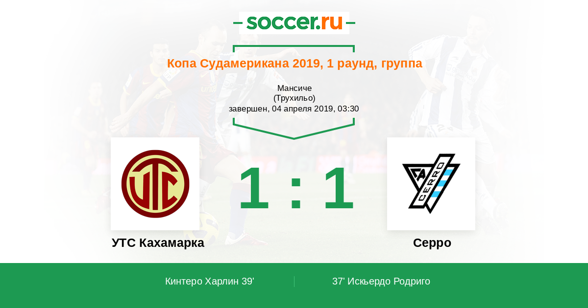 | УТС Кахамарка | 1:3 | 0:0 | 1:3 |