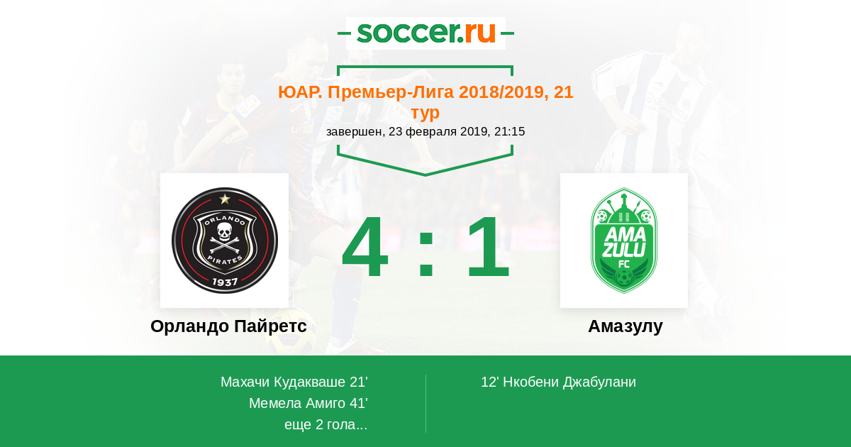 | Амазулу | 14:24 | 8:14 | 6:10 |