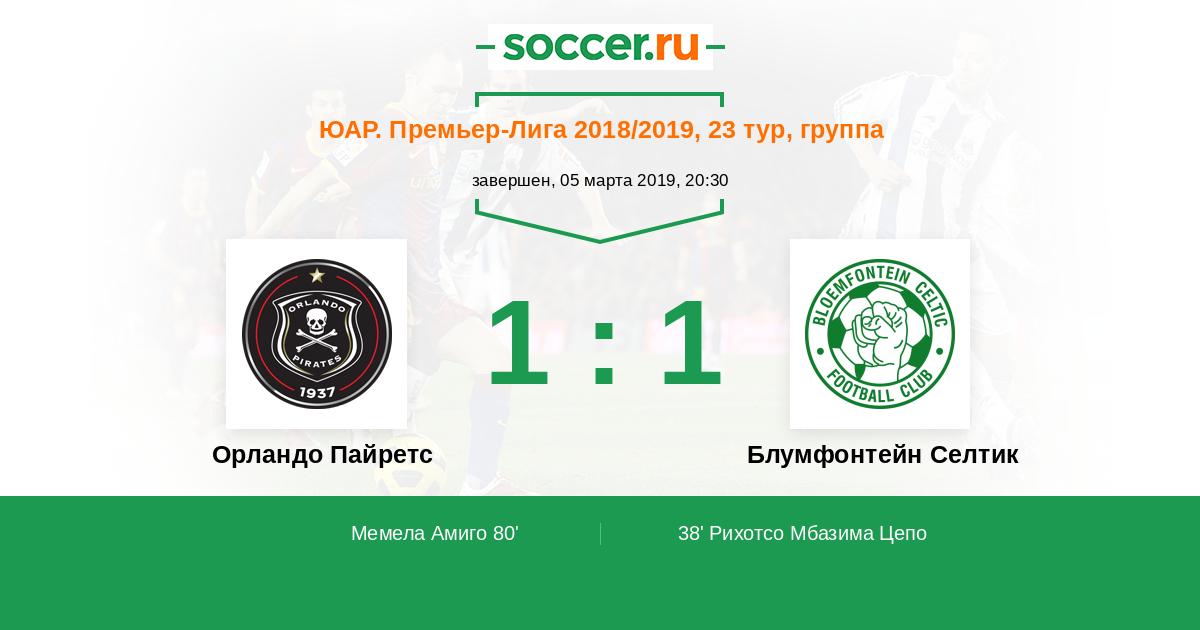 | Орландо Пайретс | Блумфонтейн Селтик | |