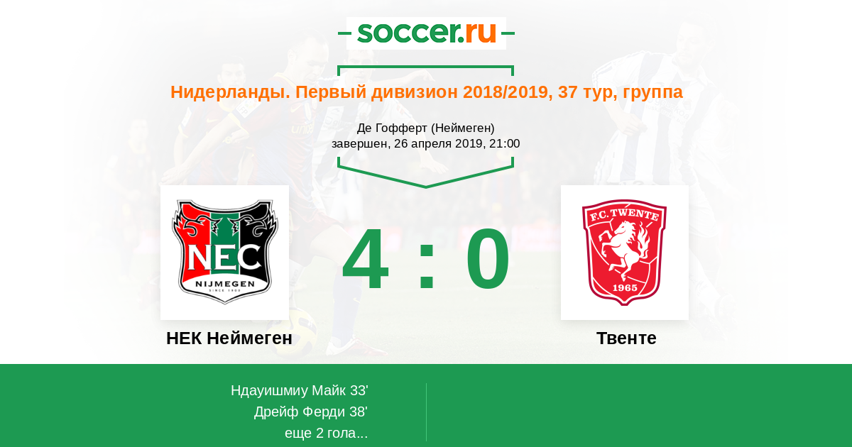| НЕК Неймеген | 63:120 | 34:56 | 29:64 |