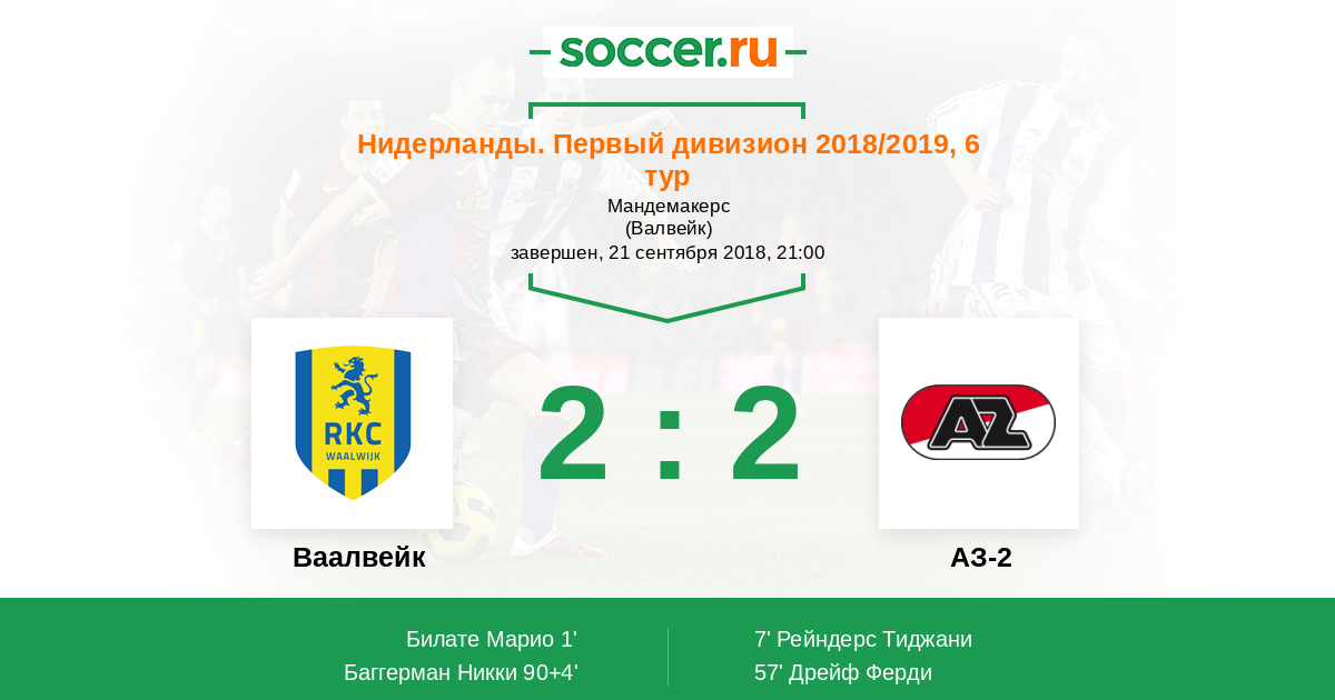 | Ваалвейк | 7:4 | 0:0 | 7:4 |
