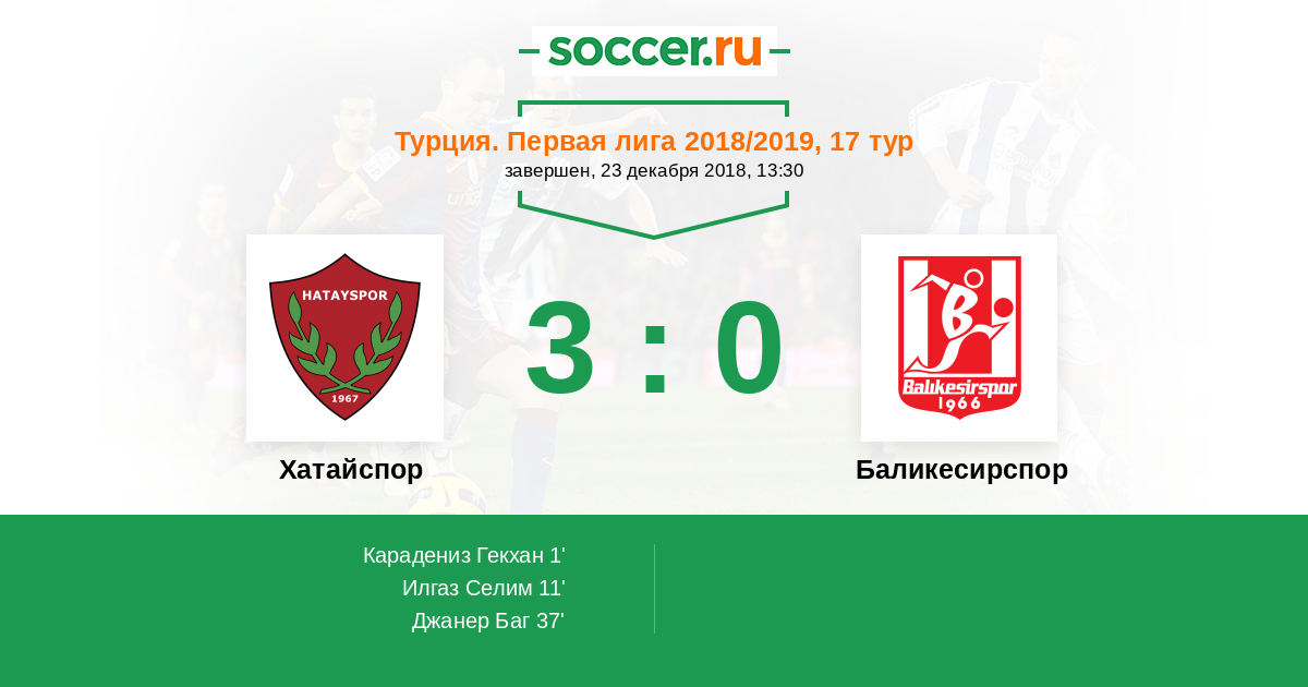 | Хатайспор | 6:1 | 2:1 | 4:0 |
