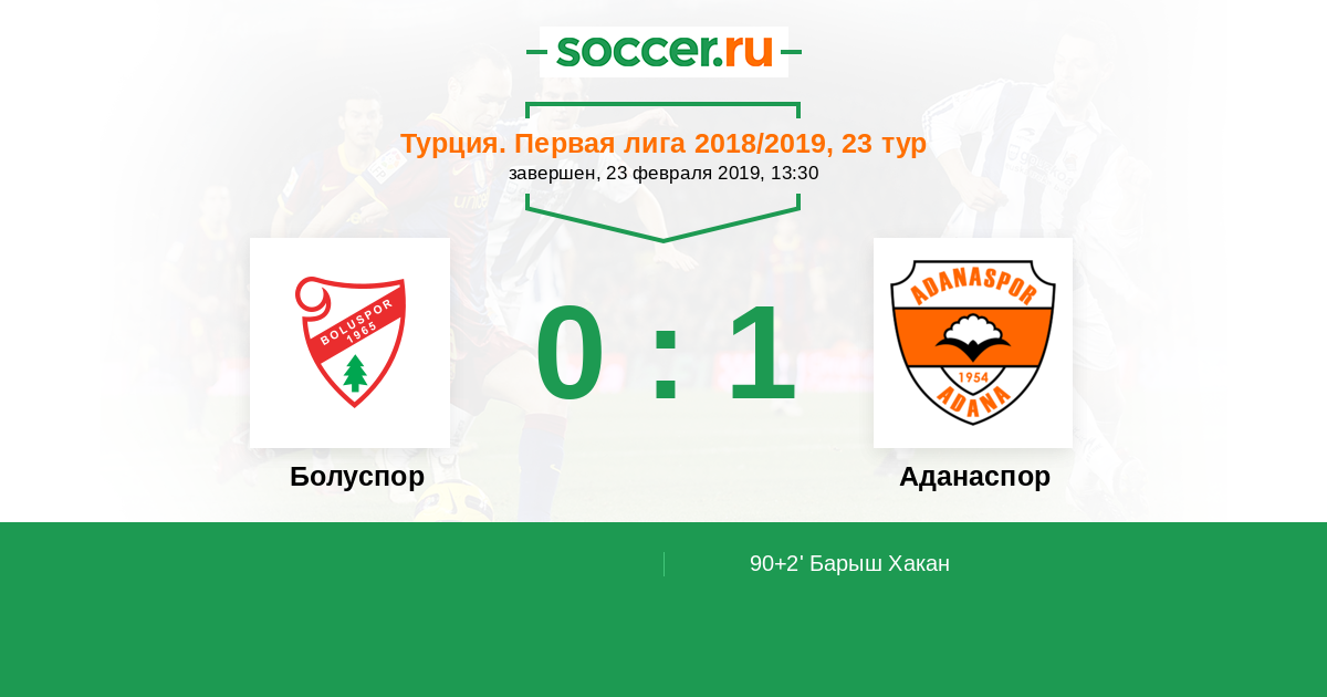 | Болуспор | 53:27 | 24:13 | 29:14 |