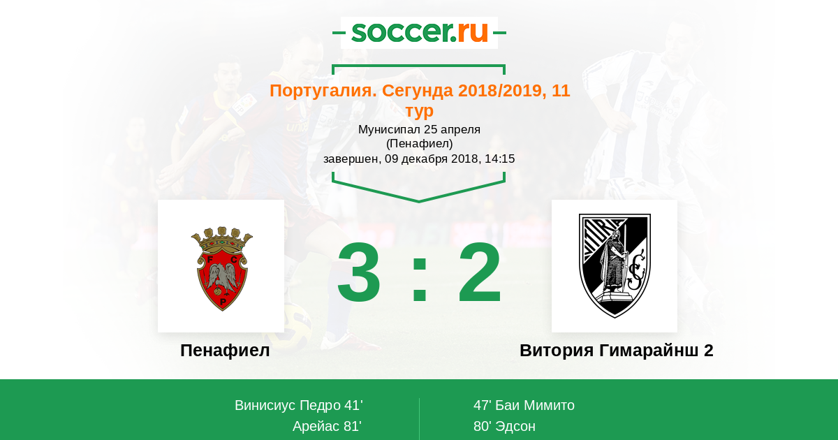 | Витория Гимарайнш 2 | 4:5 | 4:5 | 0:0 |