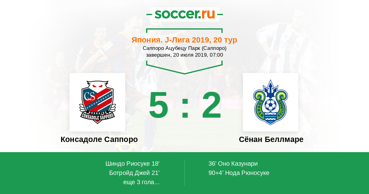 | Консадоле Саппоро | Сёнан Беллмаре | |