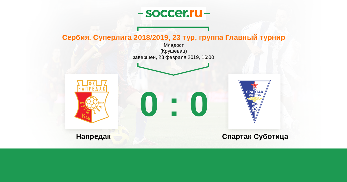 | Спартак Суботица | 29:35 | 19:21 | 10:14 |