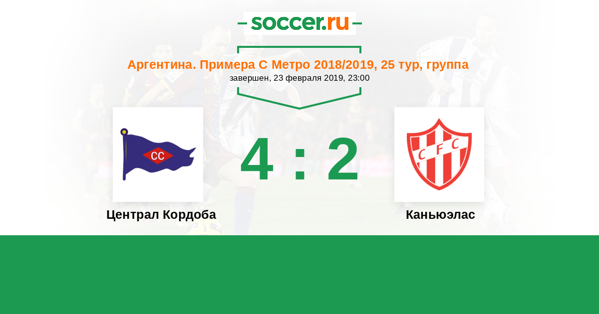 | Централ Кордоба | 4:9 | 1:5 | 3:4 |
