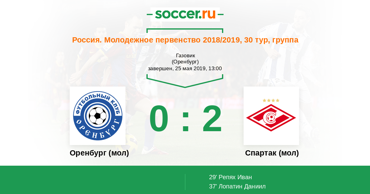 | Оренбург (мол) | Спартак (мол) | |