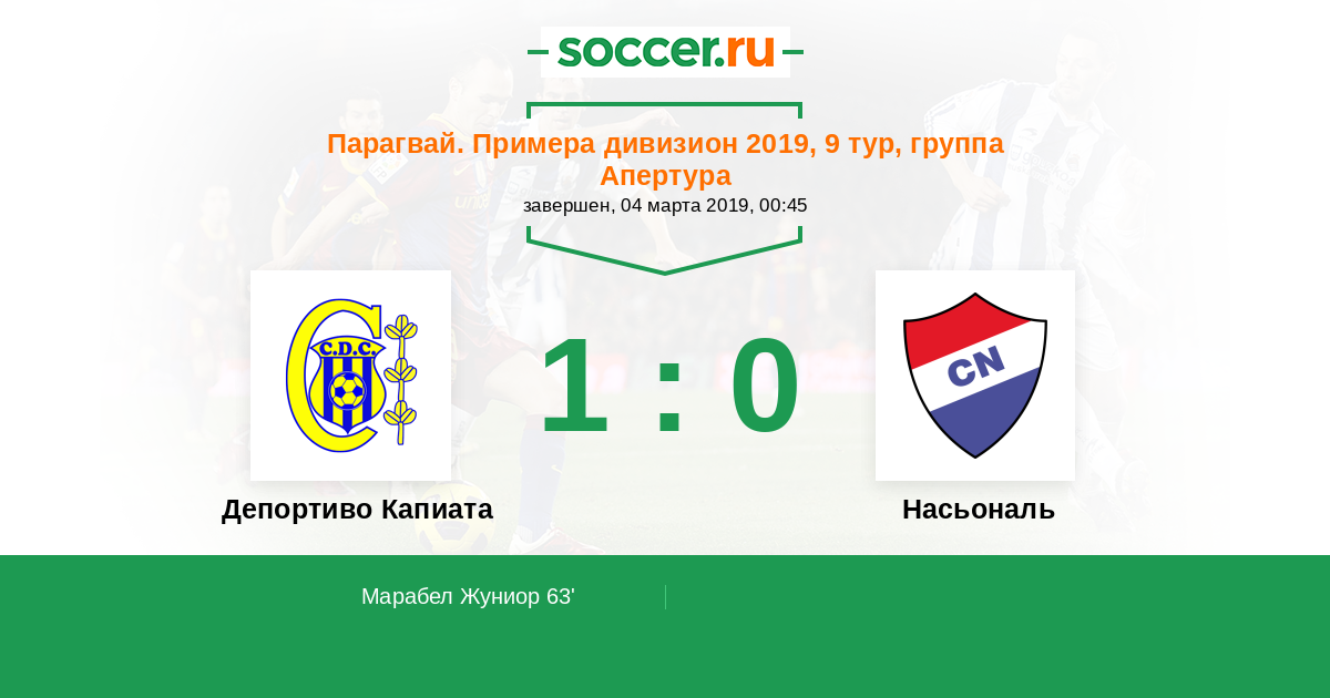 | Депортиво Капиата | 31:41 | 13:16 | 18:25 |