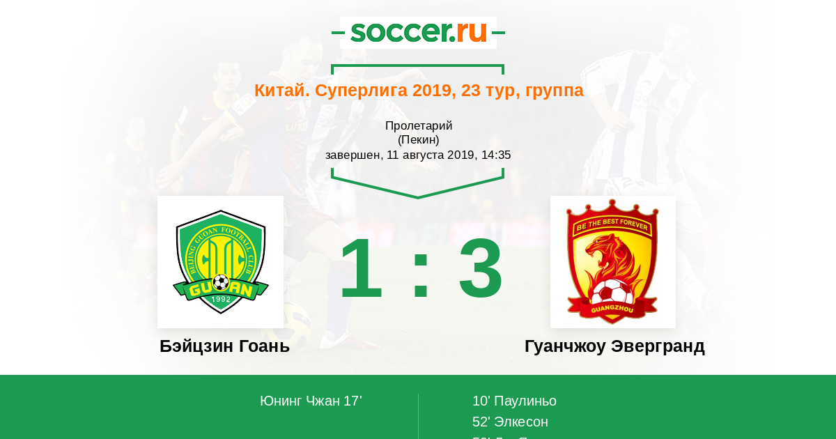 | Бэйцзин Гоань | Гуанчжоу Эвергранд | |