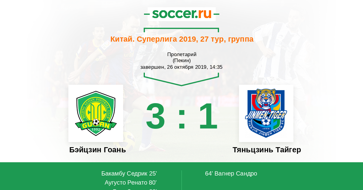 | Бэйцзин Гоань | Тяньцзинь Тайгер | |