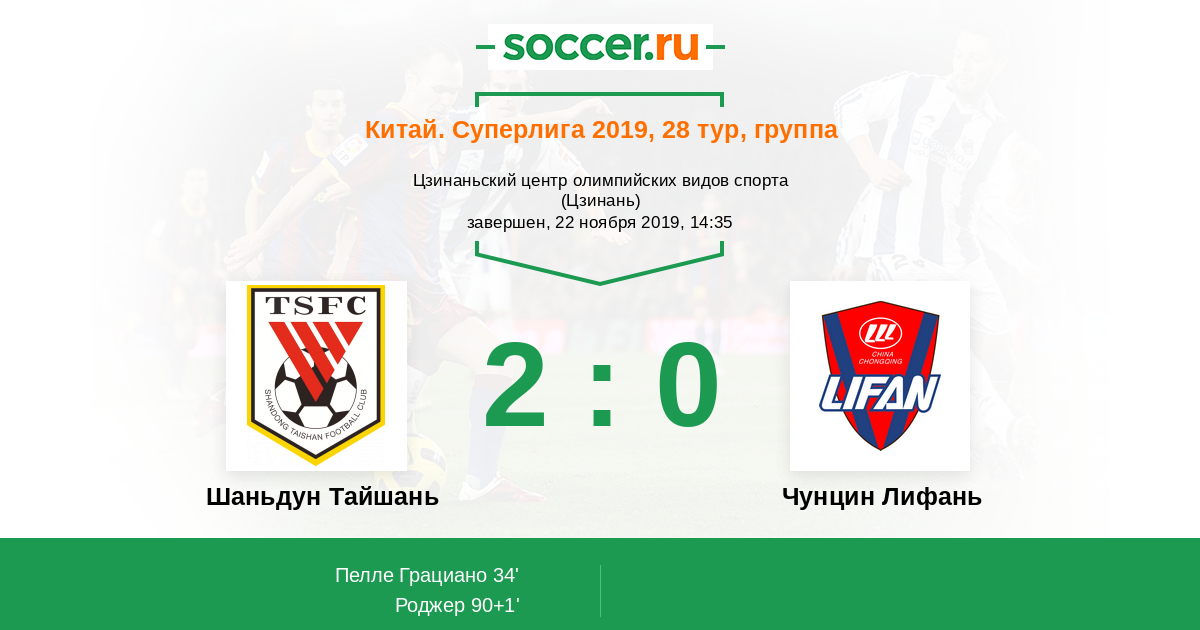 | Шаньдун Тайшань | Чунцин Лифань | |